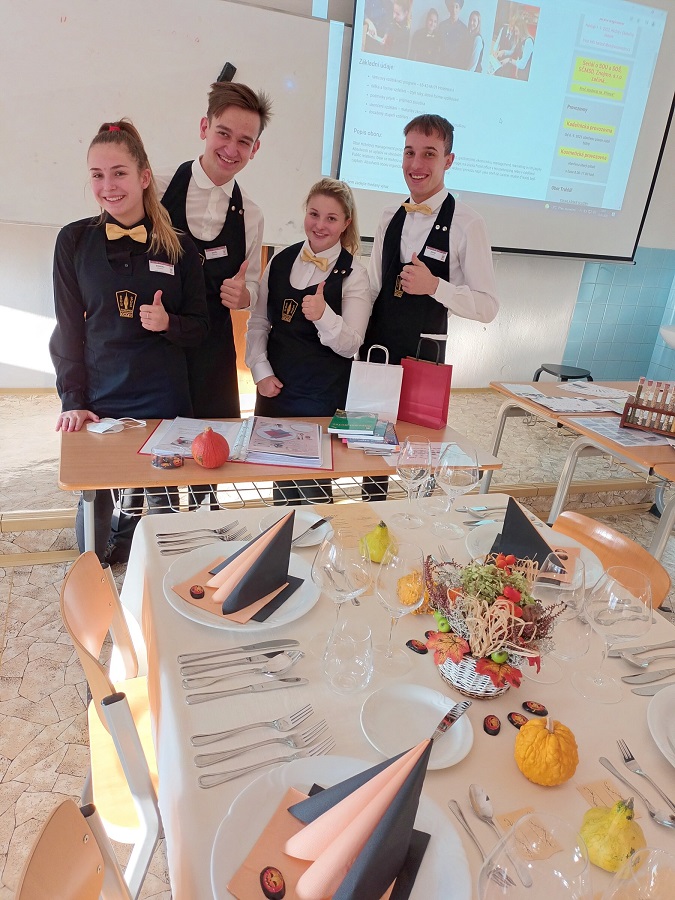 Nabídka oborů s výučním listem i maturitní zkouškou, ukázka praktických dovedností žáků, prezentace učeben pro teoretickou i praktickou výuku, poskytování informací o studiu, prezentace dovedností kuchařů-číšníků, workshopy, přednášky.