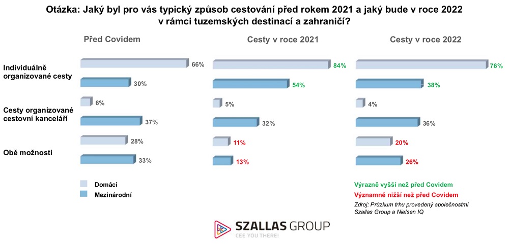 Průzkum ukázal, že lidé už nechtějí podnikat jen cesty po českých luzích a hájích. Zajímavostí je, že pobyty po Česku plánují místní jednou za čtvrt nebo půl roku, zatímco cesty do zahraničí jsou častější jednou za rok. Avšak v roce 2022 podstatně více Čechů plánuje cestovat do zahraničí. Češi chtějí navštívit cízí země alespoň jednou za šest měsíců.