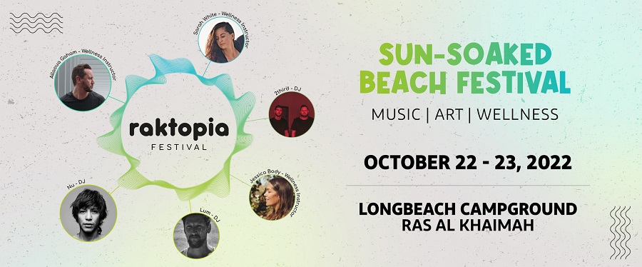 RAKtopia, první hudební a wellness festival v Ras Al Khaimah, spojí ve dnech 22. - 23. října 2022 návštěvníky se společnou vášní pro hudbu, wellness a umění. Festival se bude konat v malebném kempu Longbeach a nabídne milovníkům wellness a pláží strávit víkend v uvolněné atmosféře s wellness aktivitami a podmanivými rytmy.