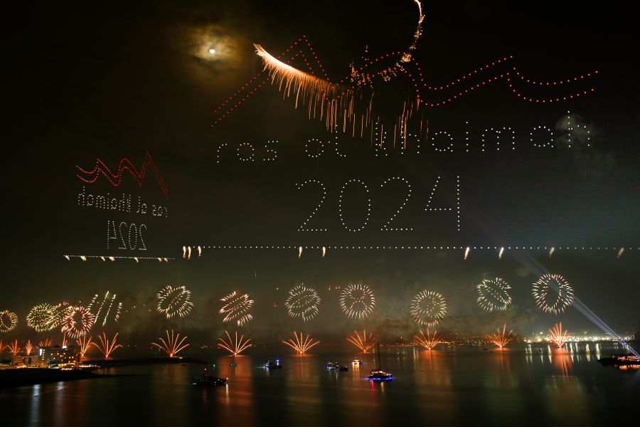 Ras Al Khaimah přivítal Nový rok dalším rekordním osmiminutovým ohňostrojem za použití dronů, čímž vytvořil dva nové GUINNESS WORLD RECORDS™. Ohromující podívaná rozzářila oblohu na 4,5 km dlouhém úseku nábřeží emirátu.