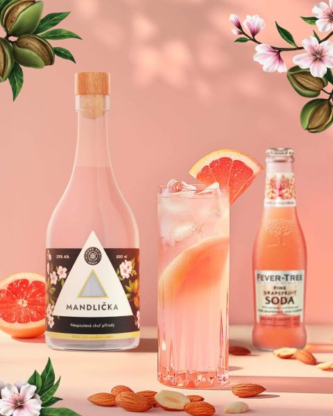 Mandlička přináší jemnou přírodní ovocnou chuť s intenzivním, hřejivým zakončením. Je čistá, hedvábně jemná a v chuti plná a vyvážená. Vyrábí se z mandlové silice pocházející ze slunné Kalifornie, která je díky podnebí maximálně aromaticky vyvážená. Mandlička je všestranný ovocný aperitiv, který si můžete vychutnat podle vlastních preferencí na mnoho způsobů. Může vás potěšit čistá, servírovaná na kostce ledu se snítkou máty, nebo jako součást oblíbených koktejlů. Např. v kombinaci s grepovou sodou si jednoduše doma připravíte osvěžující nízkoalkoholický koktejl.