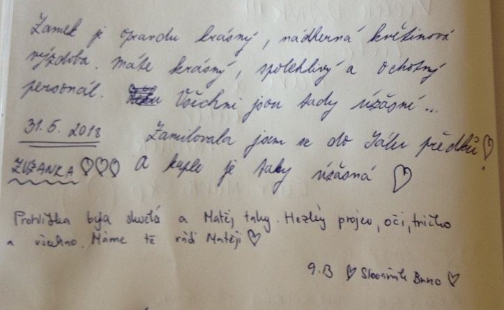 Jsme na státním zámku ve Vranově nad Dyjí, je poledne 1. června 2018 a Matěj Kotrnec se právě loučí s další výpravou, dnes již druhou. Předchozí skupina byla jiná, věkový průměr podstatně nižší. A školní skupina z Brna vedená p. učitelkou také chválou nešetřila: „Jsem tu s jedenadvaceti deváťáky ze ZŠ Slovanské náměstí Brno. Průvodce je přátelský, ale přitom si u žáků zjednal klid. Dokázal si žáky získat, hezky s nimi navázal kontakt. Má zvučný hlas, krásně artikuluje. Nevěřila bych, že je jen o dva roky starší než naši žáci. Text přizpůsobil jejich věku, kladl jim zajímavé otázky, dokázal krásně propojit výklad o zámku se znalostmi, co mají mít z oblasti historie, literatury či zeměpisu. Jsme již na výletě 4. den, absolvovali jsme toho už opravdu hodně. Vranov je jejich poslední zámek, ale žáci ho hodnotí nejlépe.“ Slova učitelky doplnili žáci: „Matějovi dáváme 10 bodů z 10, otázky super – museli jsme dávat pozor. Je fakt šikovný. Dozvěděli jsme se také, že zde straší…“
