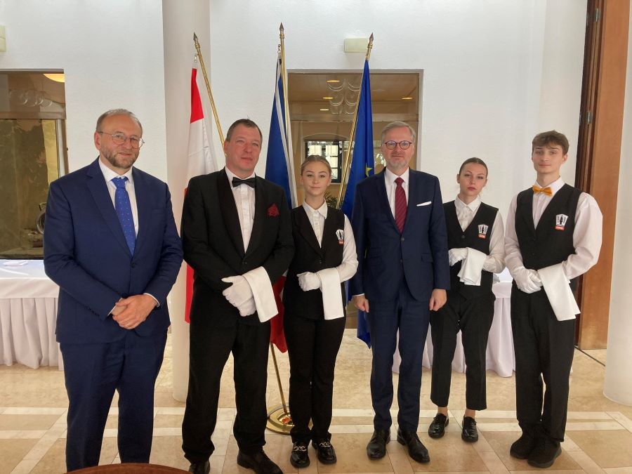„Byli jsme pochváleni! Slovy magistry Barbory Loudové, ředitelky Odboru protokolu a zahraničních vztahů Úřadu vlády České republiky, která po skončení akce ocenila naši profesionalitu při servisu slavnostního oběda a výbornou reprezentaci naší země v zahraničí. Prý už toho za svoji profesní kariéru viděla hodně, ale toto že bylo něco! Naše souhra, odbornost, profesionalita a týmovost byla dle jejích slov dokonalá. Takovou spolupráci ambasády se školou prý mohou ostatní české ambasády v zahraničí závidět,“ hrdě pronesla Robina Valičová, absolventka oboru Kuchař-číšník, žákyně 1. ročníku nástavbového studia.