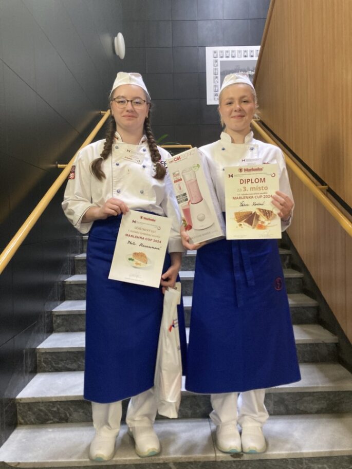 Cukrářky prvního ročníku Stela Harazimová a druhačka Šárka Kořená reprezentovaly Střední školu společného stravování Ostrava-Hrabůvka, příspěvkovou organizaci, na regionální soutěži Marlenka Cup.
