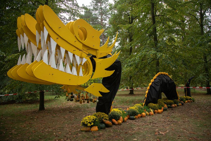 Dýně od vstupní brány po vinici Výstava dýní letos poprvé provede návštěvníky celým areálem venkovních expozic botanické zahrady. První zastavení je připravené bezprostředně za expozicí Svět sukulentů. V lesních expozicích najdou návštěvníci monumentálního draka. Další zastavení je provedou lesními expozicemi až k dýňovým vrcholkům Himálaje. V Ornamentální zahradě pak poutníky čekají gejši, samurajové, dýňové hry a vážení dýní. Pro milovníky dýní a botanické zahrady je připravený tematický photo point v podobě dýňového loga botanické zahrady. Už potřetí bude královnou přehlídky gigantická dýně od pěstitele Jana Staňka z Horních Bludovic. Letos jeho výpěstek odrůdy Atlantic Giant dosáhl pozoruhodné váhy 150 kilogramů.