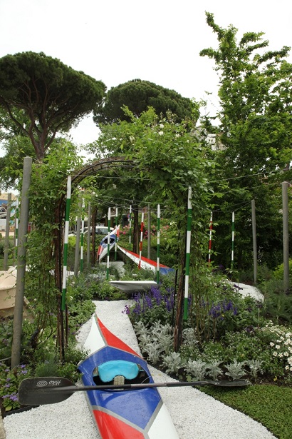 Návrh ztělesňuje jeden z významných vodních sportů charakteristický i pro naše hlavní město. „Design květinové expozice je založen na dramatičtěji modelovaném terénu, který symbolizuje peřeje Trojského kanálu. Stylizované vodní koryto je vysypáno bílým štěrkem, jehož břehy lemují výsadby v převažující modré a bílé barvě,“ představuje originální ztvárnění jedna z jeho autorek a kurátorka Botanické zahrady hl. m. Prahy Alena Nováková.