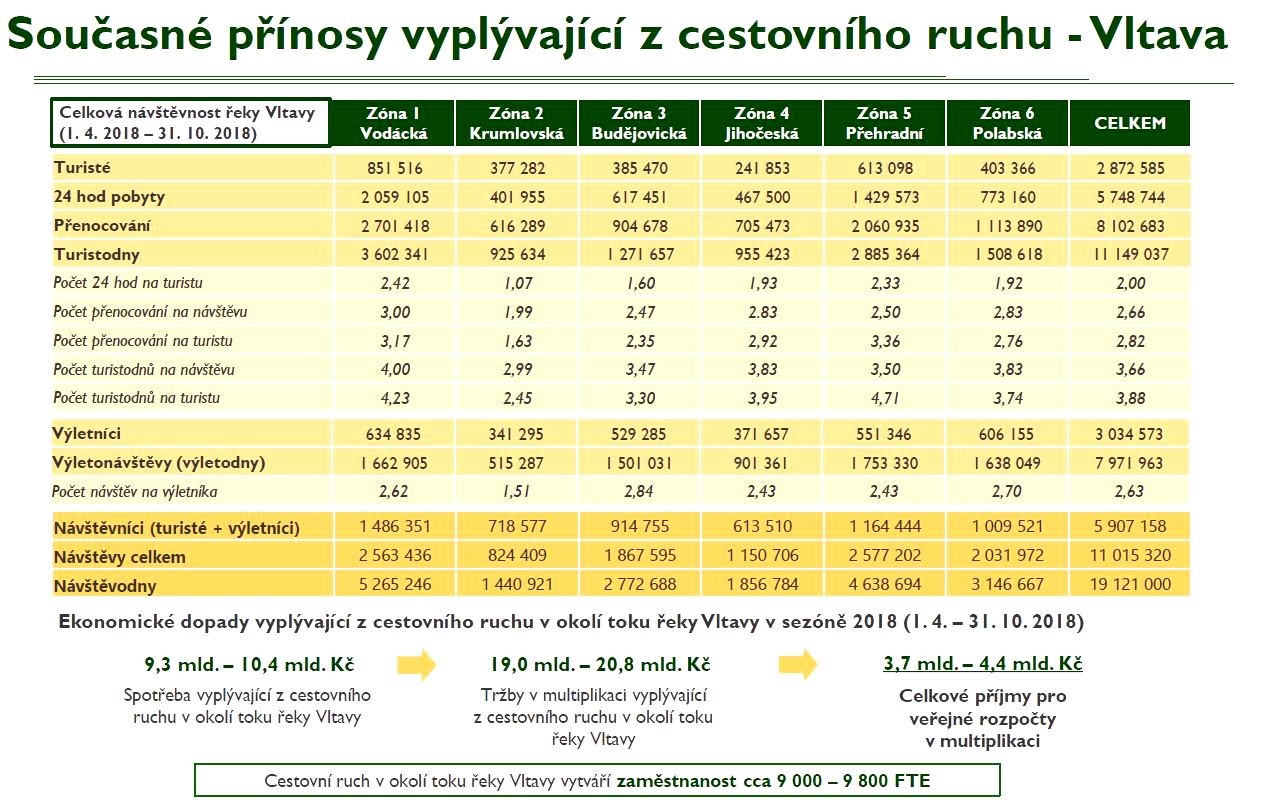 V současné době vytváří cestovní ruch v okolí toku Vltavy více než devět tisíc plnohodnotných pracovních míst. Po dokončení zmiňovaných investic by měl jejich počet vzrůst o další téměř tři tisíce.