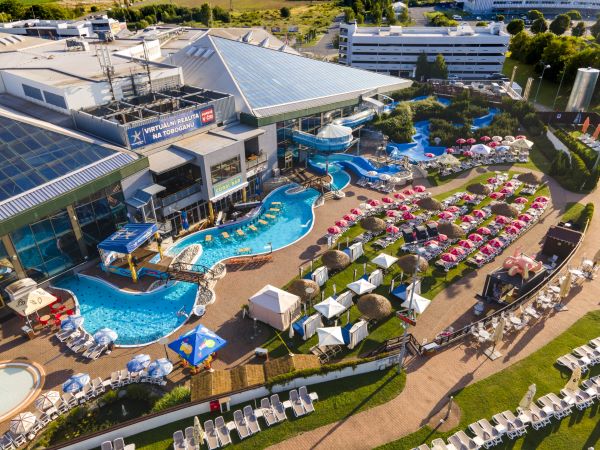 – největšího aquaparku ve střední Evropě. Celá rodina se zabaví na některé z více než dvaceti skluzavek nebo bude sjíždět nejdelší tobogán v Česku. Možnost odpočinku nabídne saunový svět nebo masáže. K venkovnímu koupání v čisté vodě zase vybízí přírodní koupaliště, pískovny nebo jezera. Jedním z nejhezčích je jezero Lhota nedaleko Prahy. Příjemné prostředí ke koupání je také u Proboštských jezer v oblasti plné zeleně s písečnými i travnatými plážemi. Těžbou písku v Polabské nížině zase vzniklo atraktivní rozlehlé koupaliště Jezero Poděbrady, vybavené potřebnými službami i Kempem na Jezeře. Jistotou krásného koupání jako u moře je pískovna Konětopy nebo pískovna u Neratovic, kde vznikl Beach Park Mlékojedy.