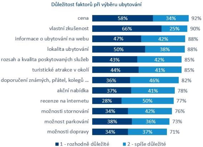 „Největší částku v nákladech na dovolenou si zpravidla vyžádá ubytování. Kolik stojí, se mimo jiné odvíjí od zájmu o jednotlivé kraje v Česku, tedy od obsazenosti ubytovacích zařízení. Podle analýzy DataRhymes z Bookingu je během červencových svátků aktuálně nejvíc rezervací v Jihočeském, Jihomoravském a Zlínském kraji. Průměrné ceny za dvoulůžkový pokoj v daných regionech jsou 2 991 Kč, 2 689 Kč a 2 836 Kč,“ říká ředitel České centrály cestovního ruchu – CzechTourism Jan Herget a dodává: „V průměru je ubytování během červencových svátků v celém Česku rezervováno už z 59,80 % s predikcí, že obsazenosti nakonec bude 85,07 %. Průměrná cena napříč republikou v dané době je aktuálně 2 786 Kč, loni se jednalo o 2 237 Kč.“ (pozn.: Jde o data stažená 2. června 2023)