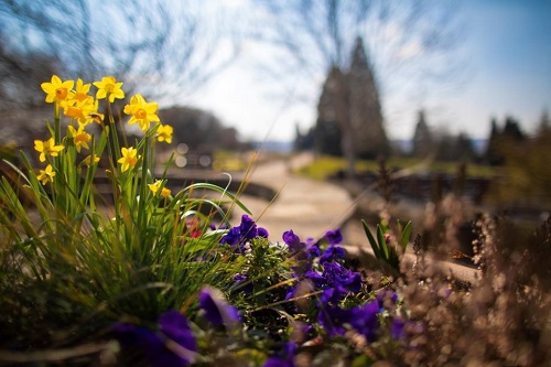 S příchodem slunečných dní začínají záhony ve venkovních expozicích zdobit první pestré květy, zasluhují se o to narcisy, ladoňky, hyacinty, škornice, sasanky, bergenie a další. „Výrazné jsou v tomto období také třešně, slivoně a sakury zahrnuté do rodu Prunus. Zejména v Japonské zahradě rozkvétají kultivary pravé sakury, patřící k druhu sakura ozdobná, ale i méně známé druhy peckovin, jako slivoň Sargentova nebo střemcha Maackova,“ vysvětluje kurátor Tomáš Vencálek.