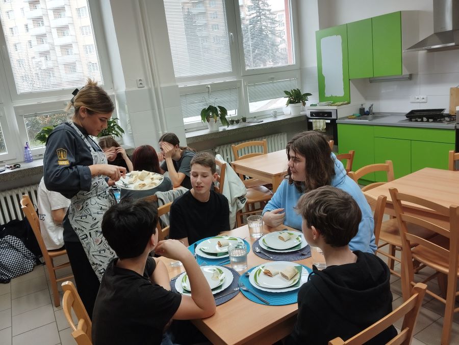 V rámci vzdělávacího projektu se žáci oboru Kuchař-číšník ze střední odborné školy na Přímětické ulici společně se žáky ZŠ Pražská Znojmo pustili do přípravy tříchodového menu. Úvodní předkrm byl podáván v podobě sýrových kanapek, poté následoval hlavní chod, kuřecí špízy s opečenými brambory, a sladkou tečkou bylo tradiční italské tiramisu. „Žáci oboru Kuchař-číšník si pro mladší spolužáky připravili nejen chutné pokrmy, ale také předvedli některé aspekty obsluhy,“ uvedla učitelka odborného výcviku Zdeňka Doubková.