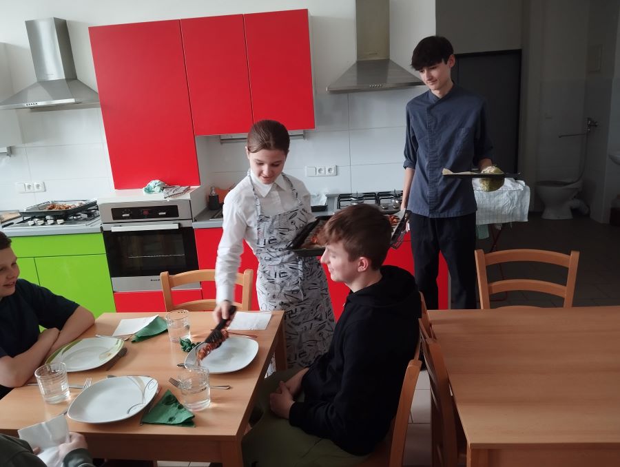 Starší žáci seznámili mladší ročníky s pravidly složité obsluhy a naučili je skládání slavnostních ubrousků. „Tato spolupráce je výbornou příležitostí, jak žákům přiblížit budoucí povolání kuchaře a číšníka praktickou a zábavnou formou. Je skvělé vidět, s jakým zápalem a šikovností se všichni do vaření pustili. Mnozí mohli během dne předvést své dovednosti při obsluze a slavnostním aranžování stolů,“ pochvalovala si paní učitelka Nováková.