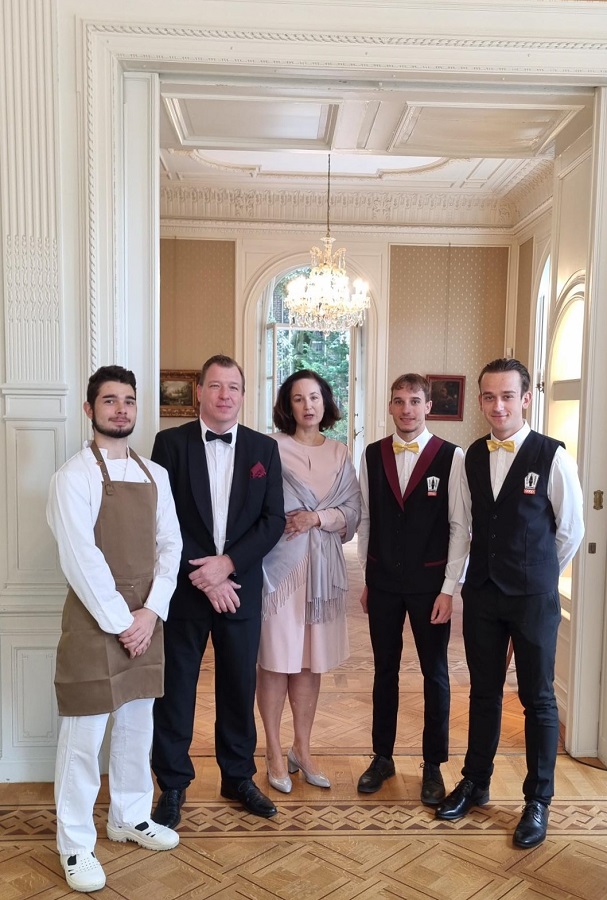 Již podesáté se žáci SOU a SOŠ SČMSD, Znojmo, s.r.o. pod vedením učitele odborného výcviku Bc. Martina Bendy zúčastnili zajištění příprav a obsluhy státní recepce u příležitostí Dnů české státnosti na rezidenci českém velvyslanectví v Haagu.