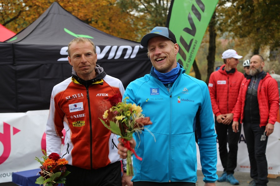 V mužské kategorii se jelo rychle hned od startu a brzy se oddělila skupina 4 závodníků, ze které na vrchařské prémii odpadl čtvrtý v pořadí Jiří Pliska a zbylí tři závodníci si to rozdali až v posledním kilometru trati. Na sprinterské a vrchařské prémii a i v celém závodě byl nejrychlejší Jan Šrail, který stanovil rekord trati na 2 hodiny, 14 minut a 49 vteřin.
