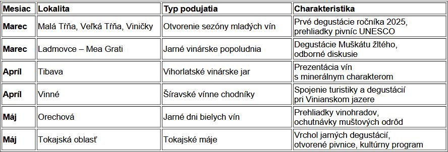 S príchodom jari sa ťažisko aktivít presúva do vinárstiev v obciach Malá Tŕňa, Veľká Tŕňa a Viničky. Marec 2026 je obdobím prvého odhaľovania kvalít mladých vín ročníka 2025, ktoré sa vyznačujú sviežosťou a výraznou primárnou aromatikou. Otvorenie sezóny zahŕňa prehliadky moderných prevádzok aj návštevu stredovekých pivníc zapísaných v zozname svetového dedičstva UNESCO. Vinárstva ako J&J Ostrožovič, Tokaj & CO, Tokaj Macik Winery či Chateau GRAND BARI pripravujú balíčky zahŕňajúce degustácie a odborné stretnutia s technológmi. Marec je obdobím, kedy sa tufové chodby otvárajú pre verejnosť, aby dokumentovali proces dozrievania vína, ktoré bolo historicky vyhľadávané na európskych panovníckych dvoroch.