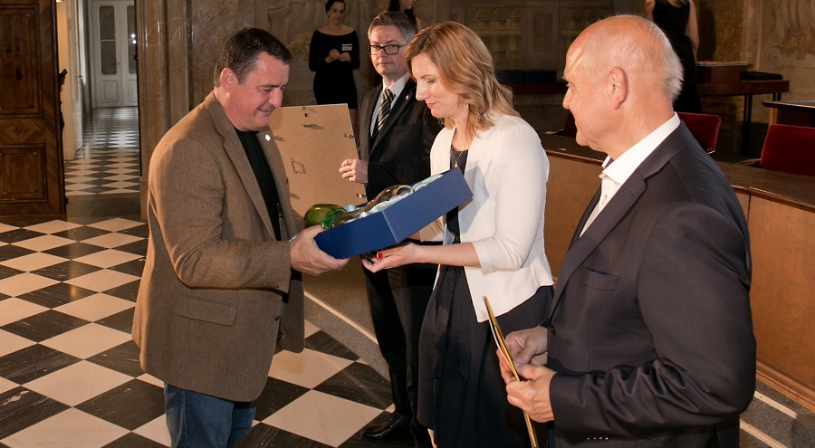 První místo v soutěži Pivex v kategorii tmavých ležáků převzal za Rodinný pivovar Bernard PR manažer Zdeněk Mikulášek.