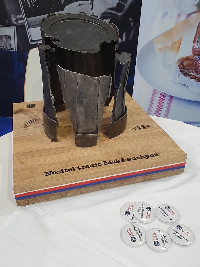 První Nositel tradic české kuchyně získal kromě čestného titulu také umělecký artefakt kuchařské čepice z dílny kuchaře-kováře Pavla Bortníka.